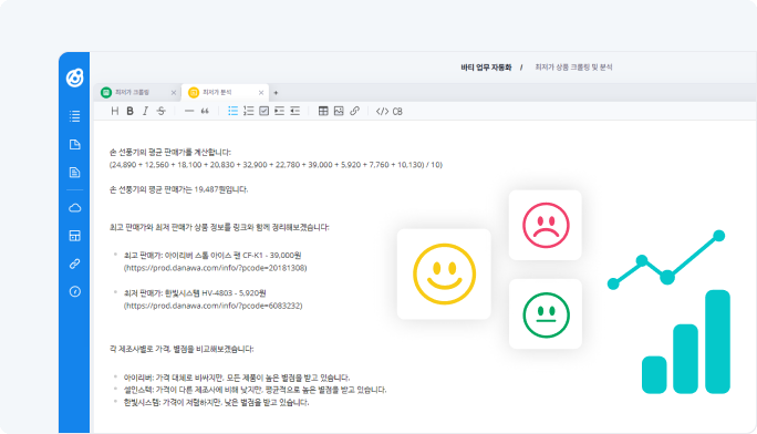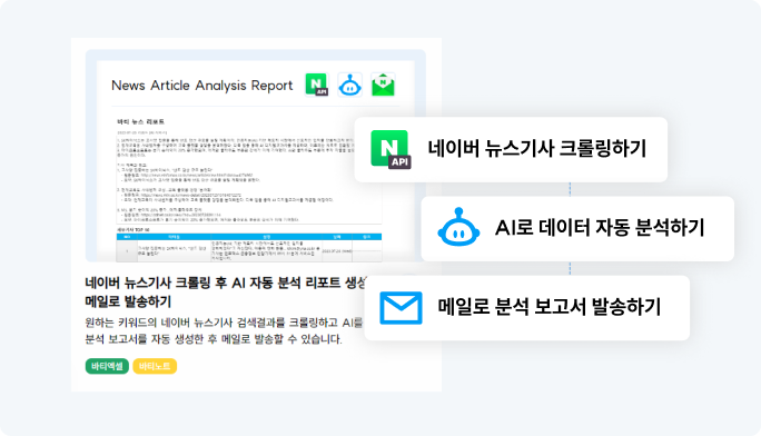 크롤링, API 연동, 데이터 수집, 정제, 가공, 엑셀 AI함수 등의 기능을 사용할 수 있습니다.